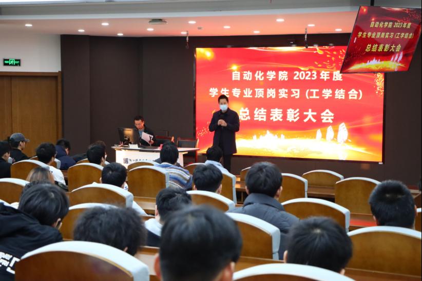 12月6日,自动化学院在五号楼5号报告厅召开了2023年度学生专业顶岗实习总结表彰大会,自动化学院副院长王耀军、合作办主任章彩涛及学生代表参加了此次大会。会议由章彩涛老师主持。