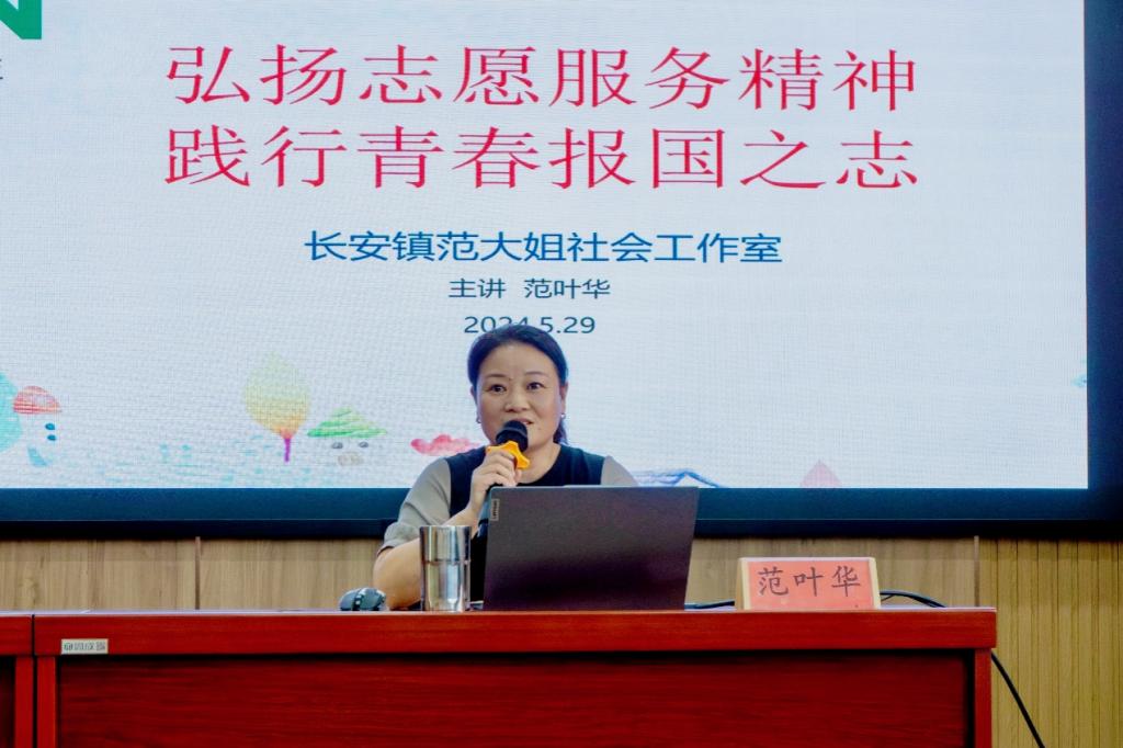 5月29日下午,自动化学院与海宁市长安镇范大姐社会工作室联合开展入团积极分子主题团课专题讲座。本次讲座特别邀请了范大姐社会工作室负责人范叶华女士主讲,为同学们带来了题为《弘扬志愿服务精神,践行青春报国之志》的精彩一课,进一步激发广大青年学生的志愿服务热情,引导他们在奉献中书写青春篇章,以实际行动践行报国志向。