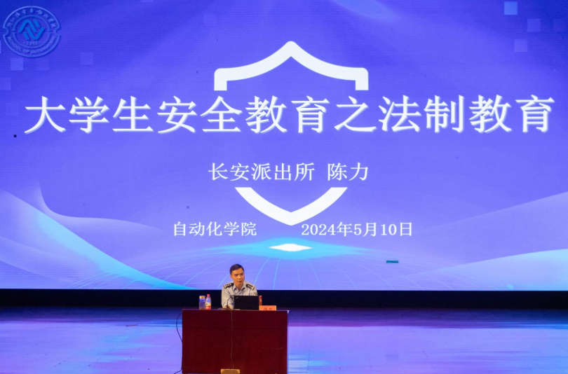为强化学院师生的安全意识,打造安全稳定的校园环境,5月10日晚,自动化学院在海宁校区小剧场组织召开了一场关于防范电信网络诈骗的法制教育主题讲座,邀请长安派出所陈力警官主讲,学院辅导员、团学干部、网格员、安全员等共同参加,讲座由学工办主任孟进主持。