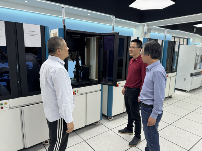 王耀军副院长和葛惠民教授在参观由浙大城市学院与至控科技联合研发的云边端AI质检产线和云化PLC测试台后,对这两项技术提出了宝贵的改进建议。随后,三方就签订战略合作协议、落实具体实施方案进行了交流,并围绕海宁校区如何开展产学研用新模式进行了深入讨论,商定了下一步合作事宜。