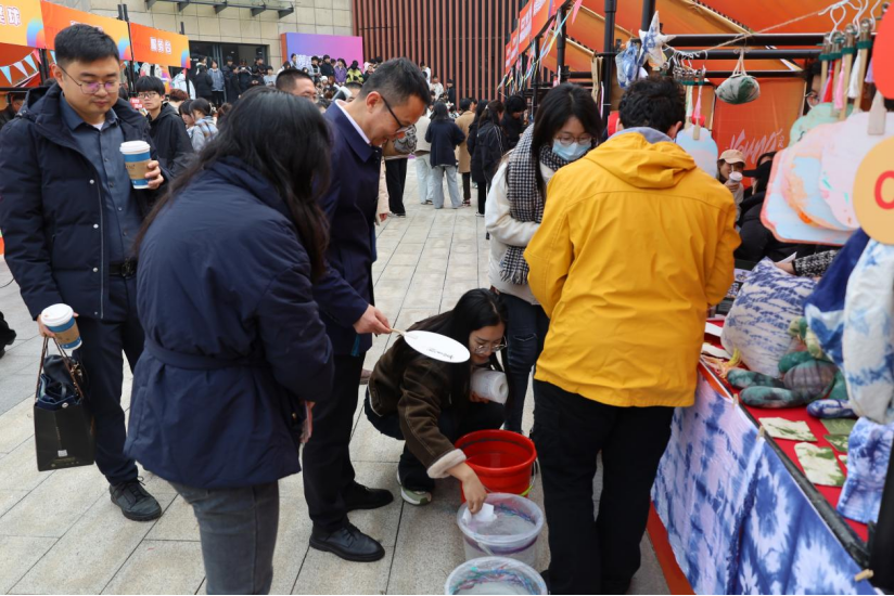 12月6日,“潮青年·一起‘young’”第二届大学生文化季(海宁)在taptap点点官方网站海宁校区隆重启动,学院“布可思艺”艺术工坊作为学校“一校一品”艺术设计展之一,以其独特的魅力吸引了众多目光,成为一道亮丽的风景线。摊位上不仅展示了精美的扎染作品,还提供了漆扇制作的互动体验,让师生们亲身体验到了非物质文化遗产的独特韵味与深厚底蕴。
