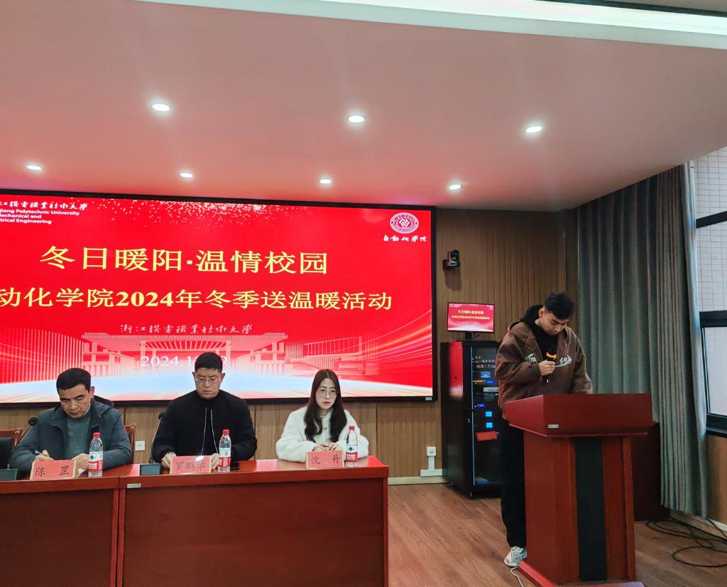 12月29日下午,学院在海宁校区18号楼203举办了一场冬季送温暖活动,学院党总支书记陈罡、副书记罗鹏举、学工办主任孟进、学院辅导员和受资助的学生代表共同参加了本次活动。