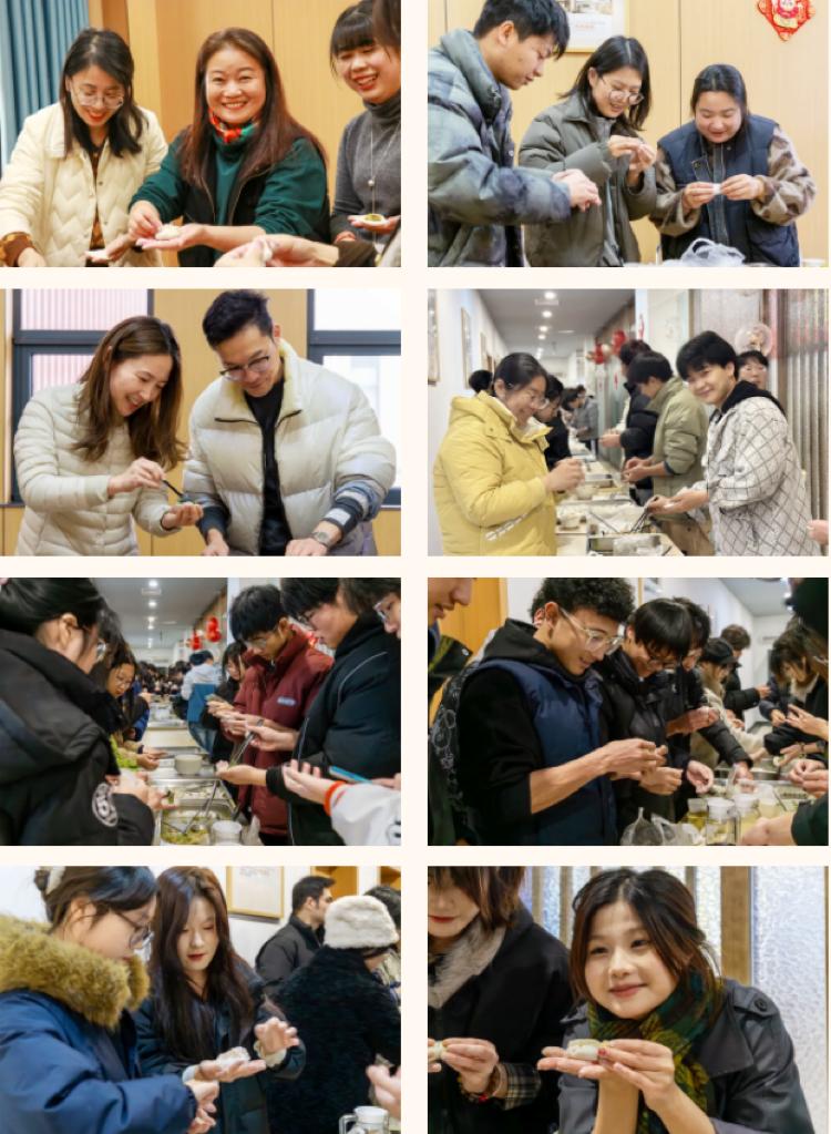 整个活动中,来自全国各地各民族的学生与老师们一起,用不同的手法和形状各异的饺子诠释了他们对传统佳节美食的热爱,对大学幸福生活的美好向往。