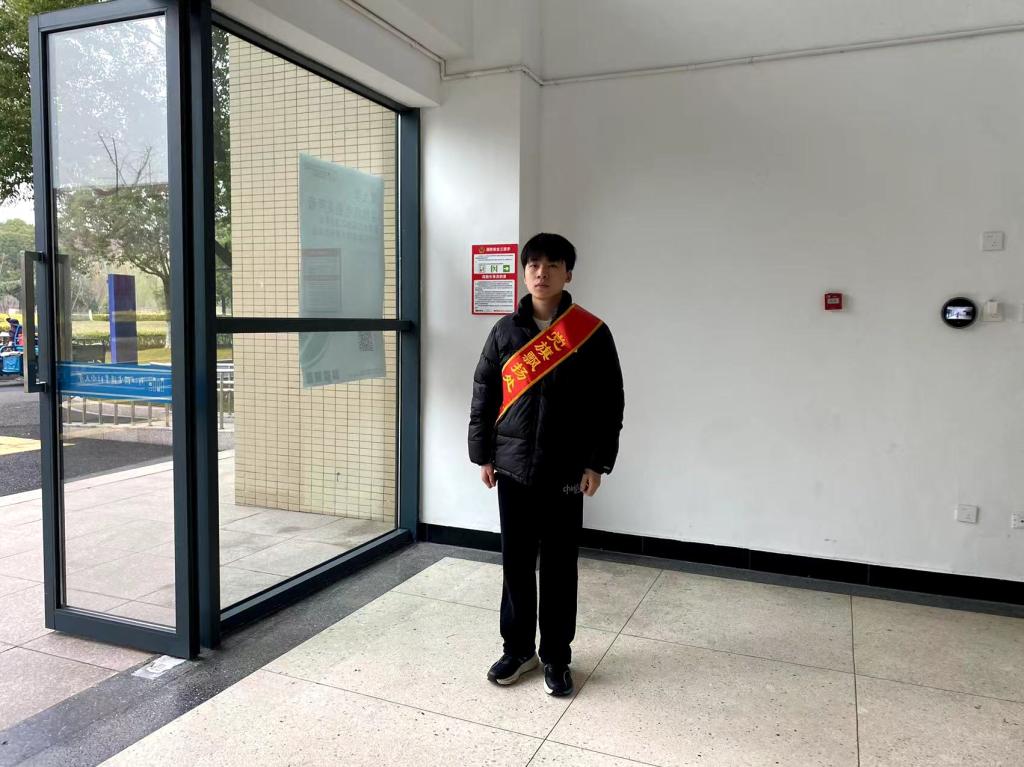 清晨8:10,志愿者们身着统一的红色绶带,准时出现在各自的岗位上。在早课高峰时段,他们耐心引导同学们:对临近迟到的同学轻声提醒“加快脚步”,对携带早餐的学生微笑示意“请勿带入教学楼”。这些细微的举动不仅维护了教学环境的整洁有序,还帮助同学们逐步将文明习惯从“外在约束”转化为“内在自觉”。志愿者们在服务过程中不仅以身作则践行文明规范,还在实践中锤炼了奉献精神,展现了自动化学院学子昂扬向上的精神风貌。