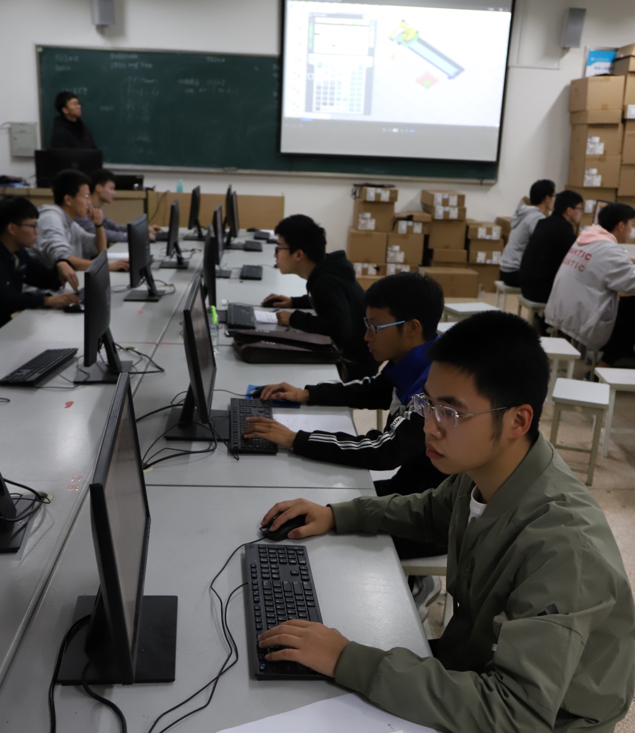 为使学生更好地了解自己的专业,掌握更深层次的专业知识,激发广大学生重技能、练技能、比技能的热情,11月20日下午,电气电子技术系技能节之工业机器人仿真竞赛在13-310拉开了帷幕。