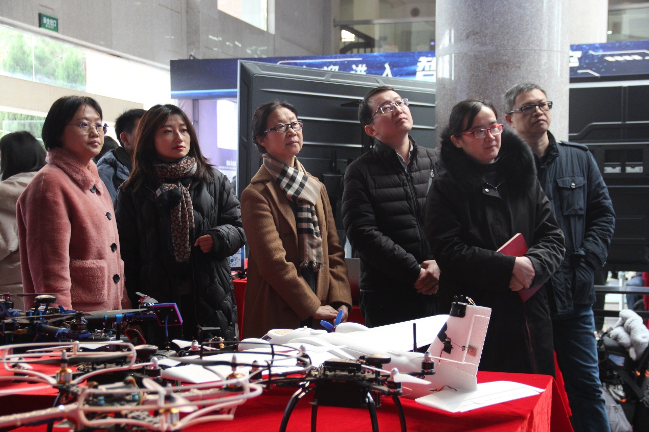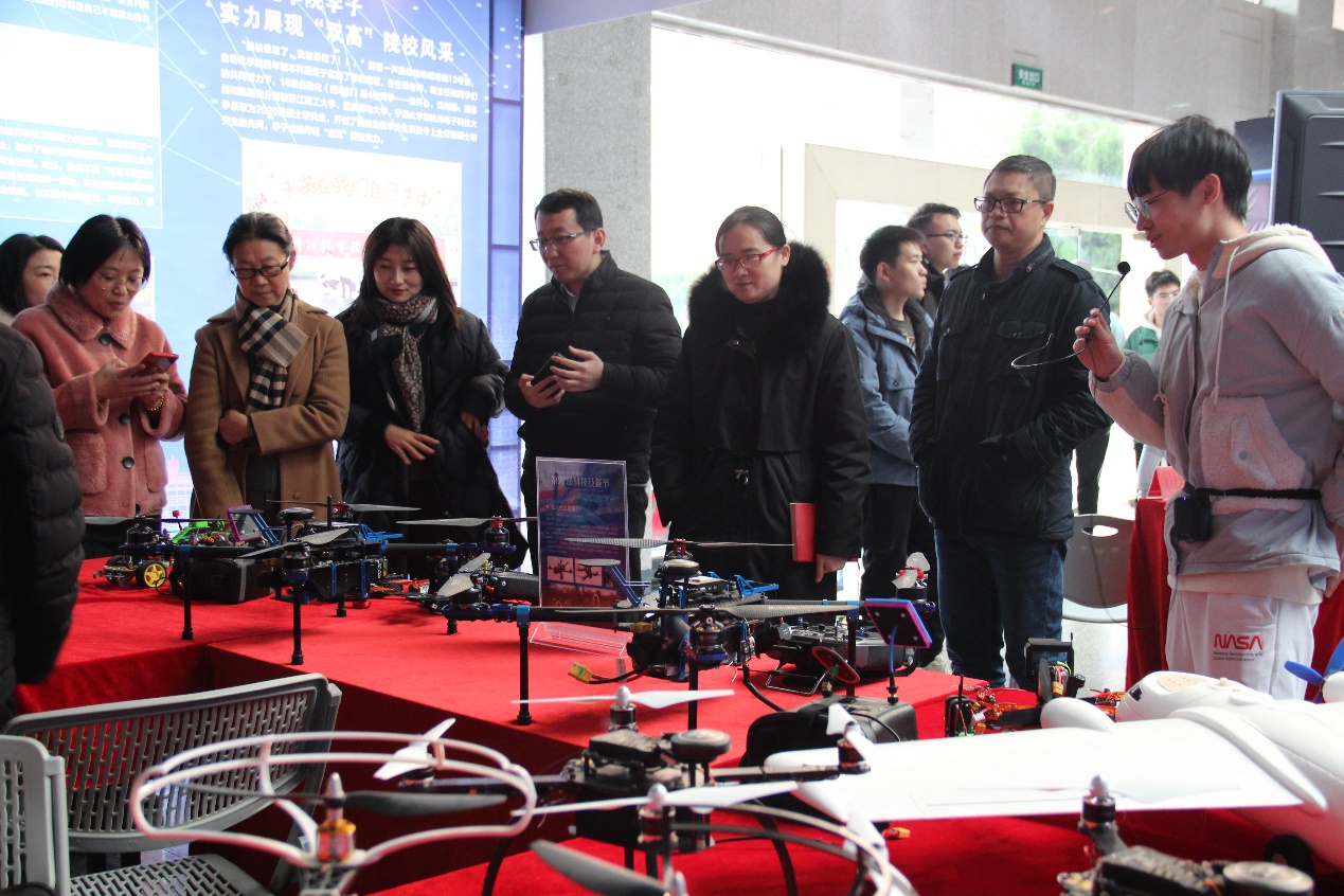 本次技能节作品展分互动体验区和参观展览区。我院在图书馆门口设无人机操控飞行区,参观的所有师生都可自主操控驾驶无人机通过障碍。另外,还有寻迹自制车作品体验,小车根据图像识别系统检测信号并绕定制轨道行驶。图书馆内为主要的参观展示区,包括无人机、自制小飞机、无线运动传感器、爱心灯、辉光检测、简易无接触温度测量与身份识别装置等自制设备的展示。参观的师生在王悦冰等同学的讲解下,更加了解了自动化学院科技技能的特色。