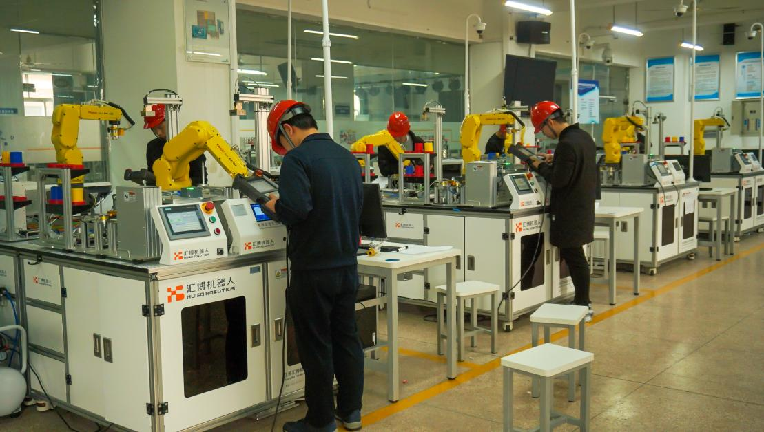 工业机器人应用编程竞赛在13号楼203实训室成功举办。比赛采用实操方式进行,参赛同学通过操作已经安装绘图笔工具的机器人,在给定涂胶轨迹纸上进行工业机器人现场编程,实现工业机器人在斜面上自动模拟涂胶的功能。比赛过程中,在黄忠慧老师的悉心指导下,同学们利用专业所学,凭借精湛的水准,完成各项比赛要求。
