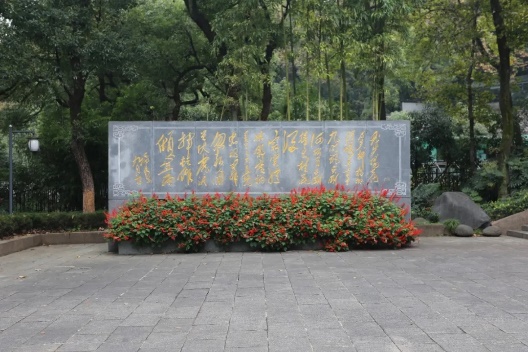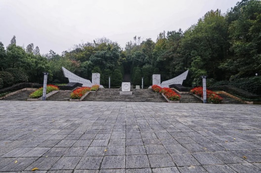 革命烈士纪念馆位于云居山的半山腰处,党校的同学们拾级而上,不一会儿便看到一对花岗石线雕狮形望柱,一方汉白玉贴面的花圈祭坛和一组大气磅礴的“浩气长存”主题雕塑。继续向前走,革命烈士纪念碑、英明碑与大型烈士群雕遥相呼应。纪念碑线条简洁,庄严挺拔,是呈“风帆”形,象征浙江革命斗争如“钱江潮”中的航船,在中国共产党领导下,乘风破浪,奋勇前进。