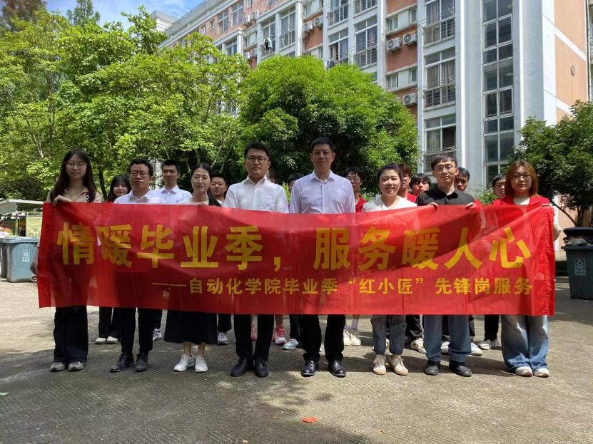 为深入贯彻习近平新时代中国特色社会主义思想,进一步教育引导毕业生铭记党恩,情系母校,深植爱校荣校情怀,营造健康、文明、和谐、有序、暖心的毕业离校氛围,提升毕业离校教育工作温度,助力毕业生踏上人生新征程,自动化学院组织开展了“情暖毕业季,服务暖人心”毕业季“红小匠”先锋岗志愿服务活动,学院党总支副书记罗鹏举、学工办主任孟进、辅导员老师及学生党员全程参与。