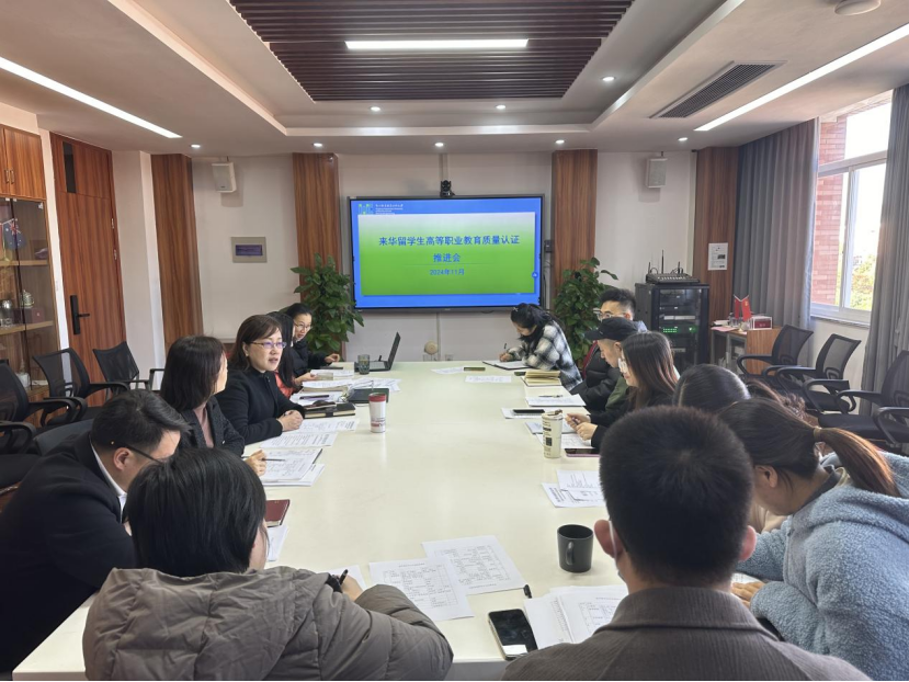 On November 27th, Zhejiang Polytechnic University of Mechanical and Electrical Engineering (ZUME) held a promotion meeting for the self - evaluation material group of the quality certification of higher vocational education for international students. Tao Yu, Dean of the School of International Education, Gao Shuiqin, Secretary of the Party General Branch, Zhang Weizhong, Vice Dean, and directors of each office and teaching & research section attended the meeting, which was presided over by Dean Tao Yu.