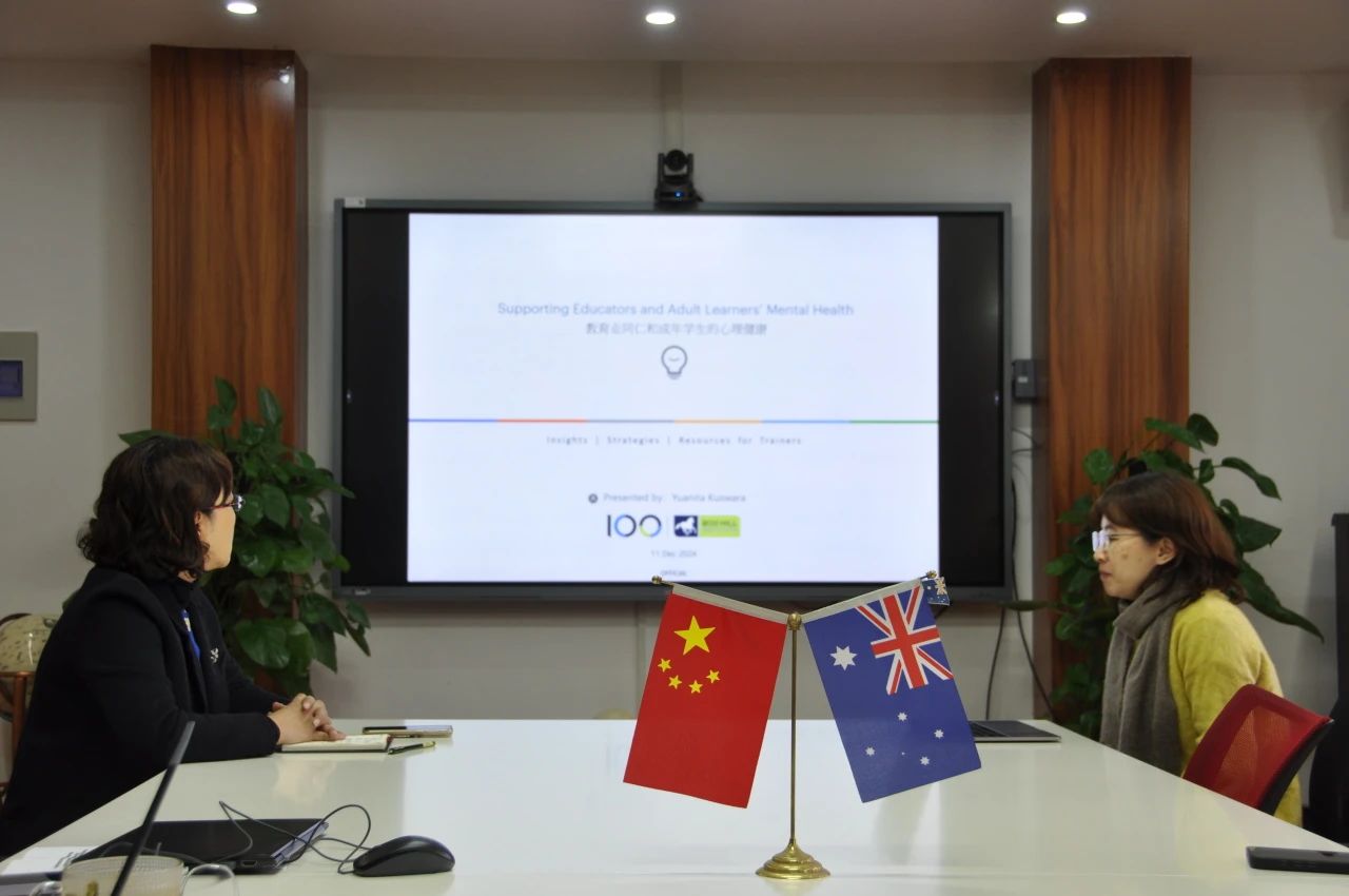 The second part was a lecture byYuanita, a teacher from Australia’s Box Hill Institute, titled “Supporting Educators and Adult Learners’ Mental Health.” It covered three main topics: the basics of mental health; how educators can support students’ mental health based on their own well-being; and practical resources and strategies.Yuanitaexplained why teacher health is important for teaching quality and student support from emotional, physical, and social aspects, and how to improve well-being through mindfulness, self-compassion, and healthy boundaries. She also shared simple resources and tools to help teachers address mental health needs, including professional services, classroom strategies, and building a supportive campus. After the lecture, teachers were invited to scan a QR code to access an interactive mini-program to input their learning summaries, psychological gains, and teaching suggestions using their handheld terminals.