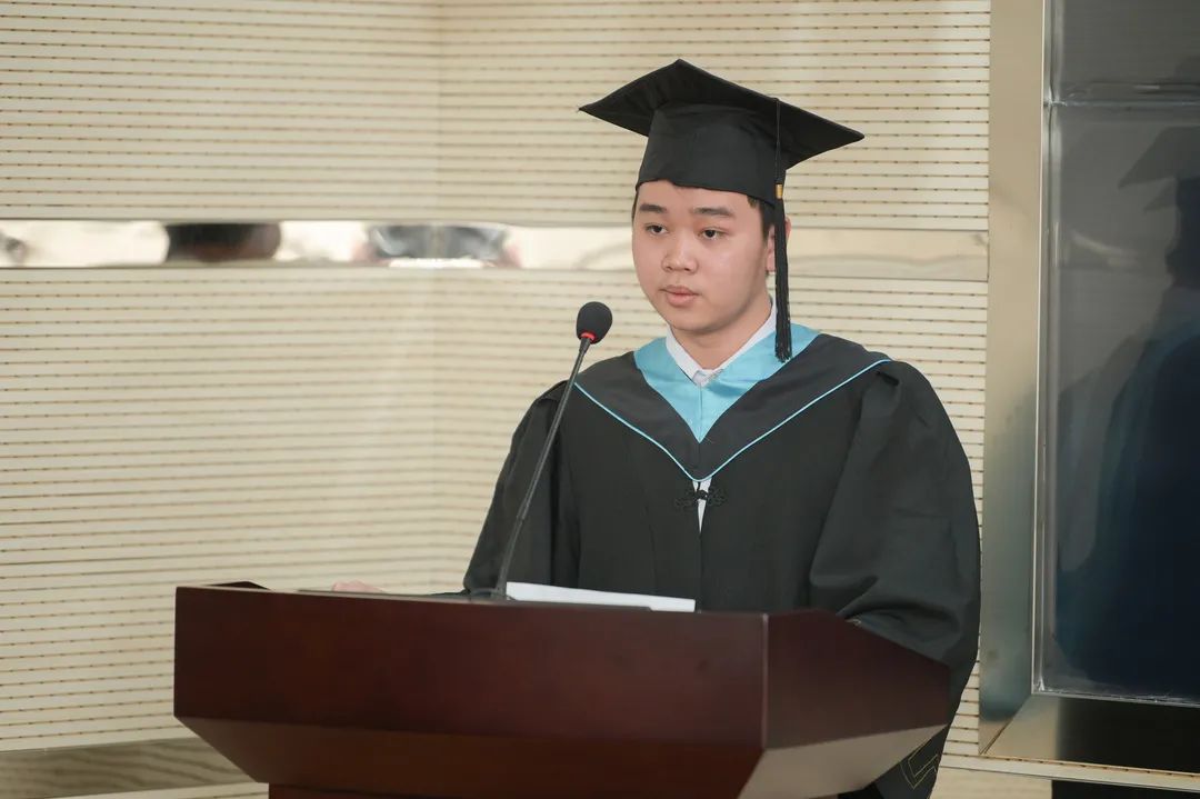 Subsequently, Aung Htet Paing delivered his graduation speech. He expressed his gratitude to the teachers and classmates for their care and assistance, especially during the pandemic when he was stranded in China. The university teachers frequently visited him in person or checked on his health through online video calls. He also expressed his hope of returning to ZIME for a visit after graduation. His sincere speech was met with enthusiastic applause from the entire audience.