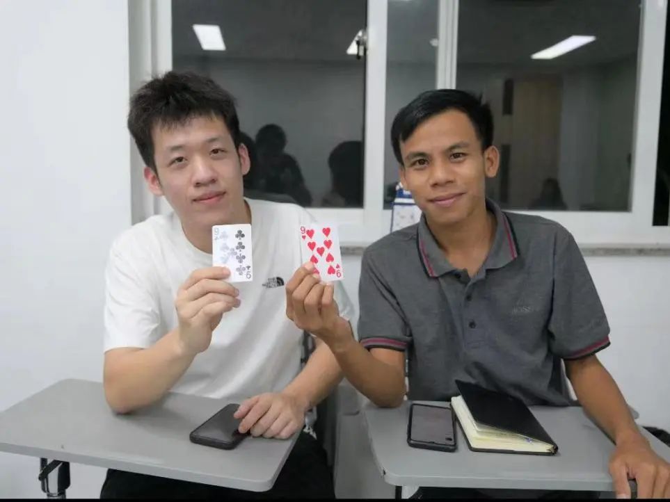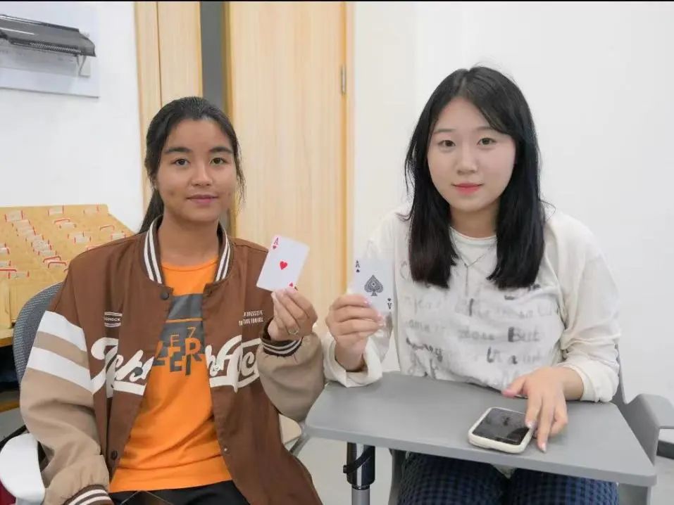 At the beginning of the event, each international student and student assistant was given a playing card with a different number. They took turns to go on stage to introduce themselves, which helped everyone get to know each other better. After that, those who drew cards with the same number automatically became partners. Chinese and Myanmar students added each other on WeChat to share their cultures and experiences. This marked the beginning of their transition from being strangers to acquaintances, from being shy to being natural. The seeds of friendship were quietly sown at this moment.