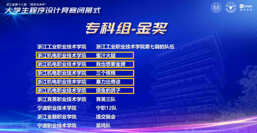 The programming competition is known as the "Programming Olympics", and it is one of the most difficult, influential, and gold-rich competitions in the major computer majors. Affected by the epidemic, the offline games originally scheduled to be held at Hangzhou Normal University were transferred to online games. This competition attracted more than 400 teams from more than 70 colleges and universities across the province. Among them, there are a total of 136 teams from 31 colleges and vocational schools, and traditional ACM schools in the province have sent the strongest teams to participate. The gold award is set at 8% of all participating teams, and the silver award is 15%. The competition is very fierce. After 5 hours of hard work, 8 teams from our school demonstrated good teamwork spirit and programming skills, all of which won silver medals and above. There are 5 golds out of the 11 gold medals of the specialist team, and the remaining three teams won silver medals. Among them, two teams from our school have entered the top 100 of the 400 teams in all the undergraduate and specialty groups, fully demonstrating the strength and style of the program design team of Zhejiang Institute of Mechanical & Electrical Engineering!