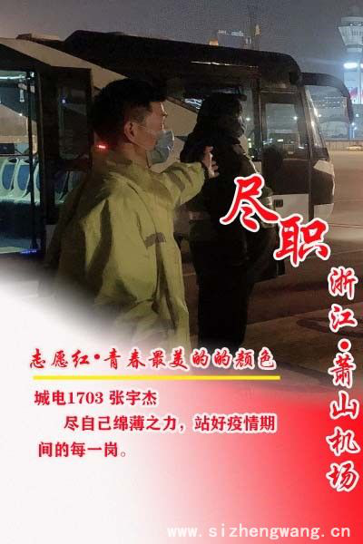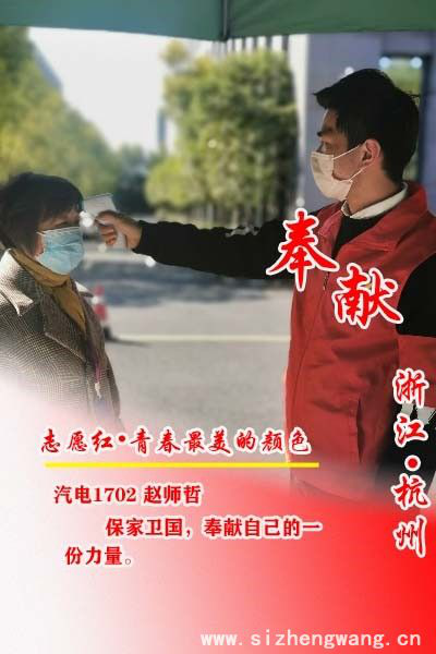 Behind the orderly resumption of work in Zhejiang is the result of the concerted efforts of the government, enterprises, and epidemic prevention and control personnel. Among these, volunteers are indispensable. One of them is Zhao Shizhe, a student of Class 1702 of the Department of Transportation Technology of Zhejiang Institute of Mechanical & Electrical Engineering.