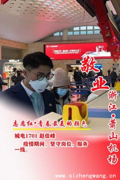 The Spring Festival was originally a day of family reunion and happiness. Still, because of the need for epidemic prevention and control, Zhao Jiafeng, class 1701 of Urban Rail Transit Electromechanical Technology, failed to return home for the Lunar New Year, and homesickness could only be conveyed through a video call. During the epidemic, as a ground service check-in operator of Xiamen Airlines, he stuck to his position, made his own protective measures, and worked hard to ensure the safety of passengers. He retrieved passengers from Hubei, Wenzhou, and Taizhou flights and inquired about the passengers' recent physical condition, check the color of the passenger's health code, and ensure every passenger's check-in service. Besides, he does daily disinfection work, for example, disinfecting the check-in counters and self-service luggage check-in machines that passengers can touch to avoid indirect transmission of viruses. He said that the most gratifying thing in the work is the concern and encouragement from travelers, and the sound of "Thank you very much" makes people feel warm.
