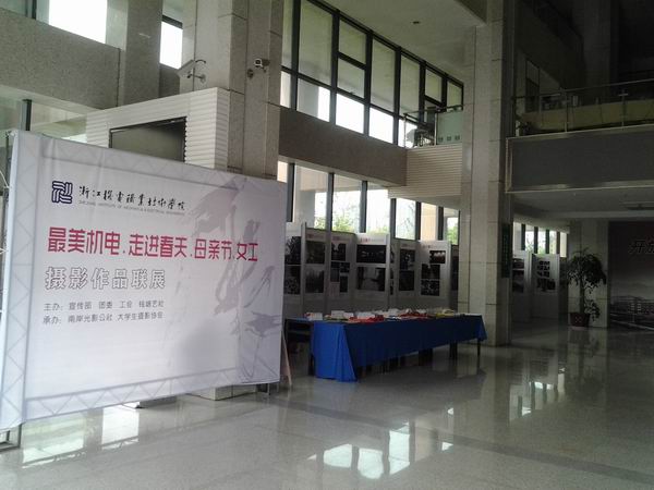 校工会和宣传部、团委、钱塘艺社在学校综合楼在大厅联合举办最美机电.走进春天.母亲节.女工摄影及手工作品,全校职工积极参加,踊跃投稿,其中“春收喜悦”、“校园樱花”、“春的收获”等很多摄影作品得到大家的好评,母亲节女工展