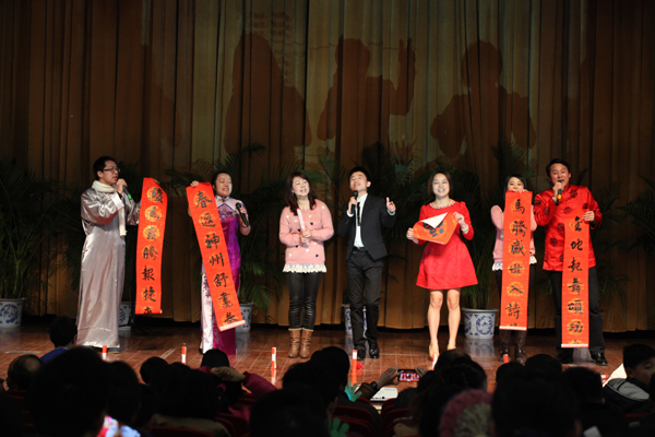 taptap点点2014年迎新春联欢会在5号楼报告厅举行,学校领导与全体教职员工欢聚一堂,在欢歌笑语中共迎新春。各分工会精心准备,节目丰富精彩,营造了和谐、喜庆的节日气氛!演出取得圆满成功!
