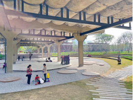 上午,健步走打卡第一站小河公园,小河公园所在位置原先是新中国成立后浙江省建设的第一座油库——小河油库,是杭州标志性“老工业”遗存之一,日本设计师隈研吾在2019年给予了它新生,用光影孔洞细说它的故事。行走在小河公园,在“新”与“旧”的交融碰撞间,体会小河文化、油库文化、运河文化,感受时代变迁之美。
