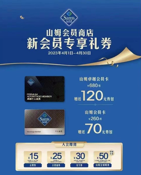 2. 现场新办理山姆会员可得(主卡+副卡+70元优惠券礼包),当日办理人数达20人,每人额外获得30元专属无门槛优惠券。