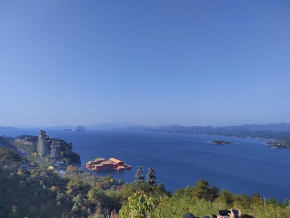 活动首站,工会一行拾级而上,登上位于千岛湖边的天屿景区。天朗气清,蓝天白云,从天屿台俯眺山下,一望无际的千岛湖全景尽收眼底。分工会成员们欣赏湖光山色,投身自然美景,心旷神怡,身心愉悦。