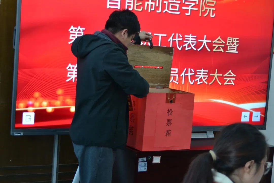 张平同志对《智能制造学院绩效分配改革实施方案》进行了详细的解读和说明。全体代表经过认真充分讨论,郑重的行使表决权利。监票人、计票人认真履职,顺利通过《2023年度智能制造学院工作报告》、《智能制造学院﹝2023﹞人员绩效经费划拨办法》、《2023年度智能制造学院工会工作报告》、《智能制造学院2023年度工会财务工作报告》。