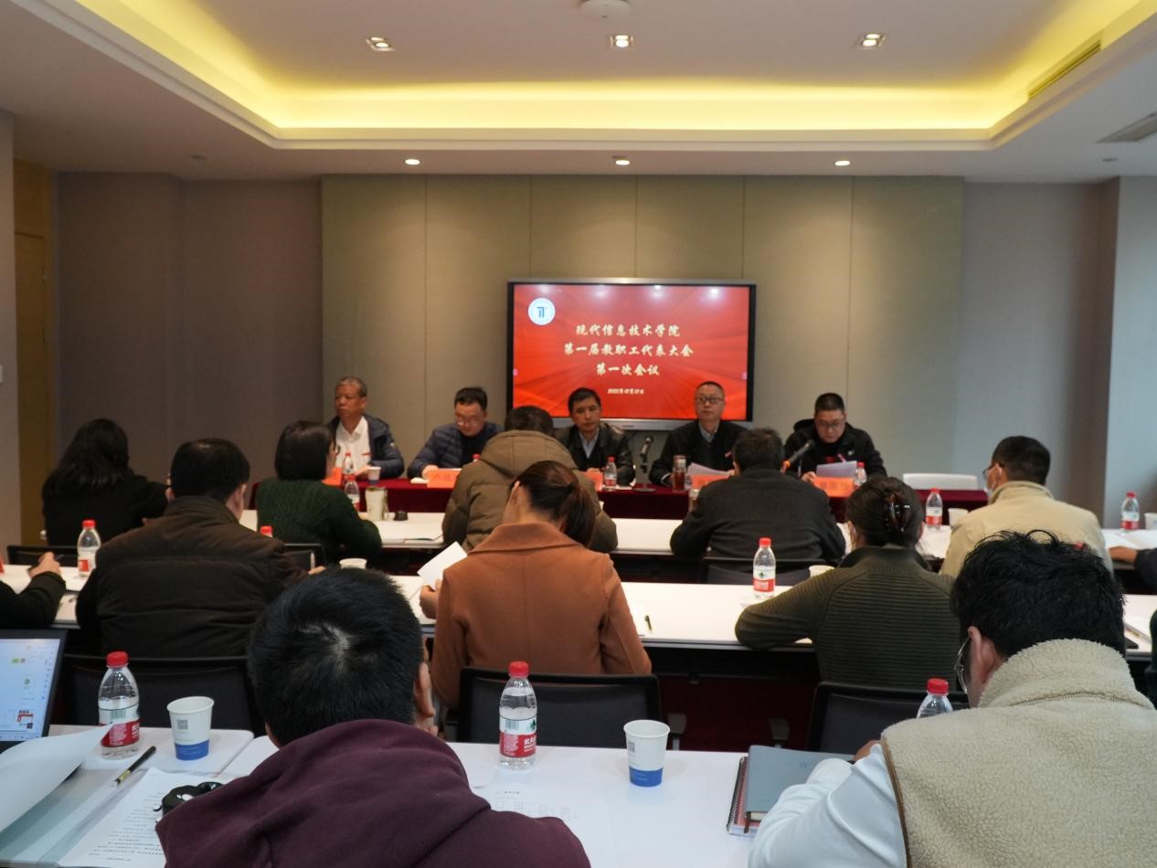 2023年12月13日日下午,现代信息技术学院在滨江校区综合楼教师发展中心jf306召开第一届教职工代表大会暨工会会员代表大会第一次会议。学院21名教职工代表出席会议,还有部分科级干部、高级职称教职工代表等列席会议,会议由分工会主席章国赞主持。