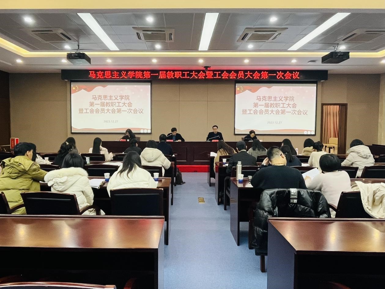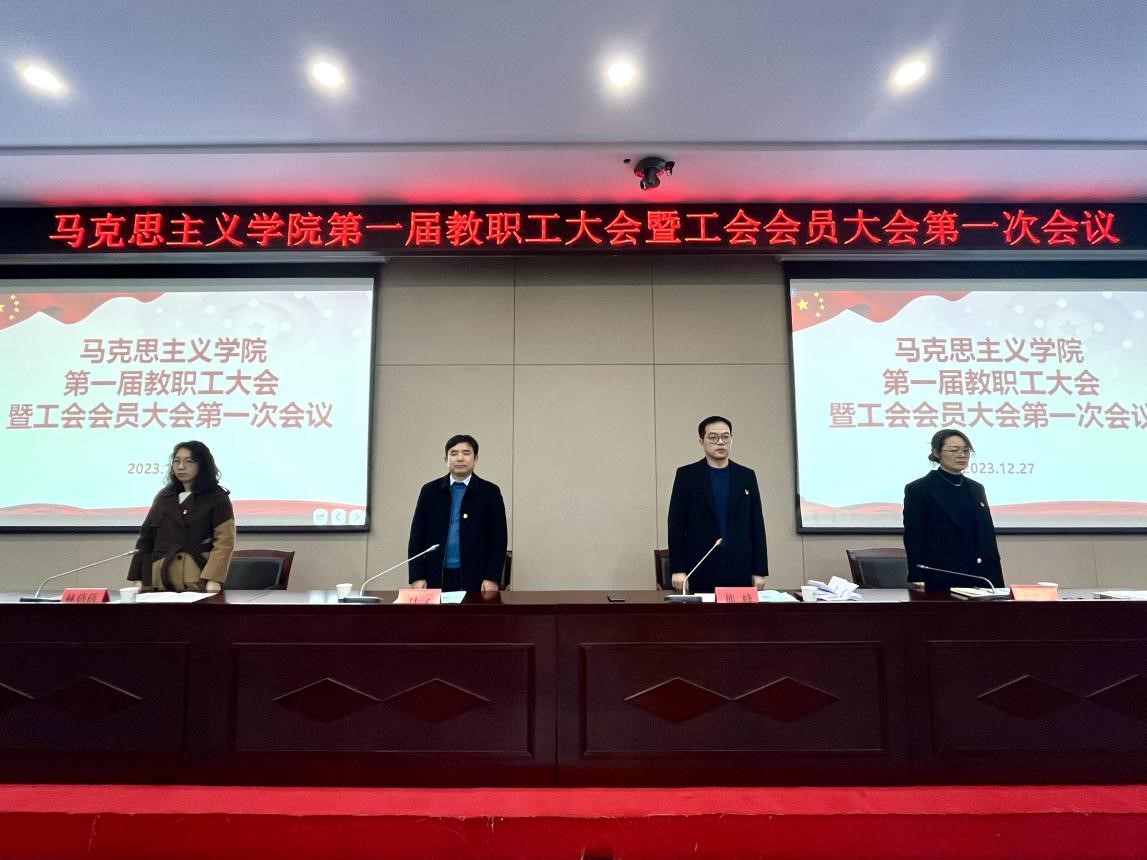 会议在庄严的国歌声中拉开帷幕。会议听取并审议通过了2023年度马克思主义学院工作报告、工会工作报告、工会财务工作报告,审议通过了《马克思主义学院绩效工资分配实施办法(草案)》《马克思主义学院教研室工作考核办法(草案)》两项制度文件。