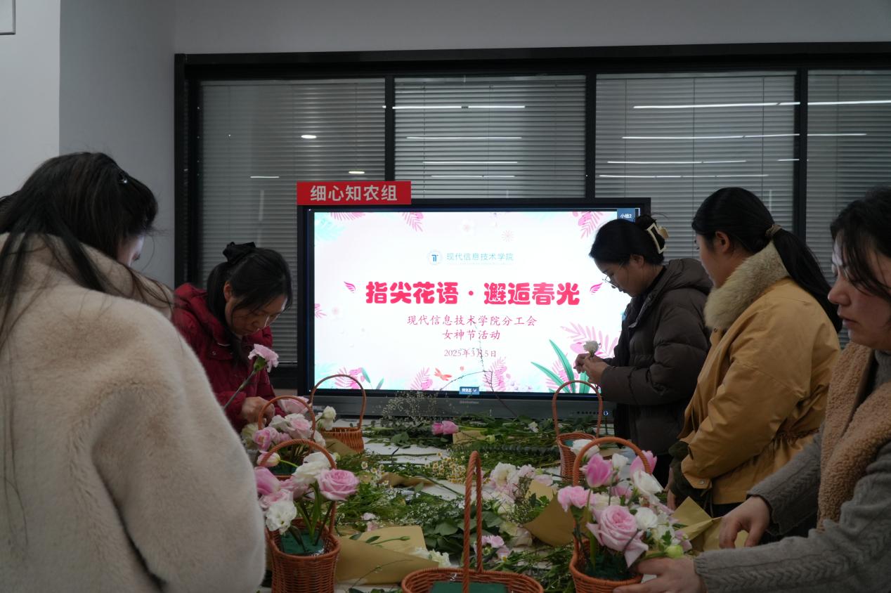 阳春三月,春风和煦,万物复苏,春意正浓。在这个充满生机与希望的季节里,我们迎来了第115个“三八”国际妇女节。为庆祝这一属于全体女性的节日,现代信息技术学院分工会于2025年3月5日(周三)在综合楼508室,携手中信银行平海支行,成功举办了一场以“指尖花语·邂逅春光”为主题的手工插花活动。此次活动旨在表达对女性同胞的深切尊重与关怀,同时借助插花这一艺术形式,展现女性的独特美丽、坚韧力量以及无穷的智慧与创造力。