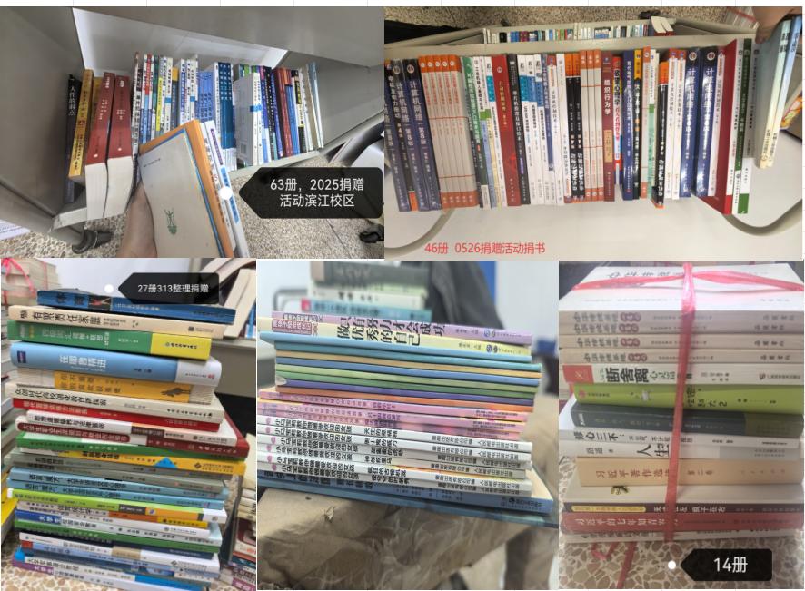 活动期间,两校区图书馆一楼服务台前人来人往,热闹非凡。全校师生、关心学校发展的各级校友纷纷响应号召,带着闲置书籍踊跃登记捐赠。一本本承载着知识与爱心的书籍,从捐赠者手中传递到图书馆,汇聚成一股温暖的力量。截止到6月10日,活动参与40人次,共收到捐赠图书800余册。这些书籍涵盖了文学、历史、科技、艺术等多个领域,为校园图书馆增添了丰富的藏书资源。