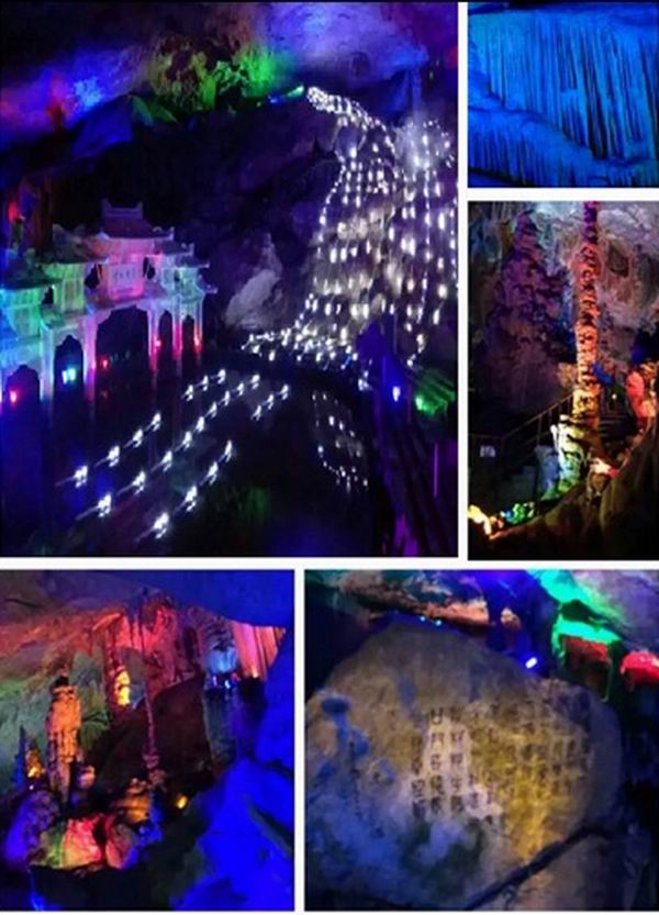 瑶琳洞内各种造型奇特的钟乳石、石柱、石笋不计其数,奇诡无比的洞天世界加上人类的丰富想象,再配上如梦如幻的彩色灯光,将这亿万年前大自然的杰作变得更具有画面感和故事性,置身洞中,如误闯仙境,我们不得不为大自然的鬼斧神工所折服,让人乐而忘返,不能不使人发出“凡人思此不思归”的感叹!