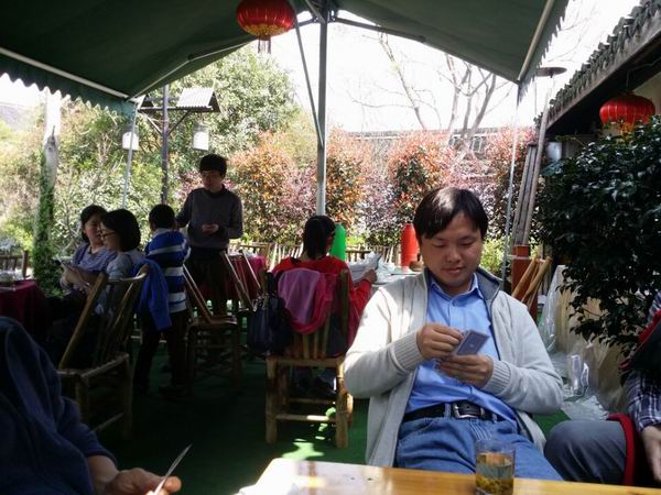 计算机学院分工会组织教职工到下茅家埠12号清溪余韵进行“春季品茗交流活动”。此次活动得到了教职工的积极响应,伴着淡雅的茶香,大家三个一群,五个一组轻松而愉悦的交谈着,交流心得,部分老师在现场进行双扣切磋。整个活动气氛融洽,教工身心得到了放松,收获多多。