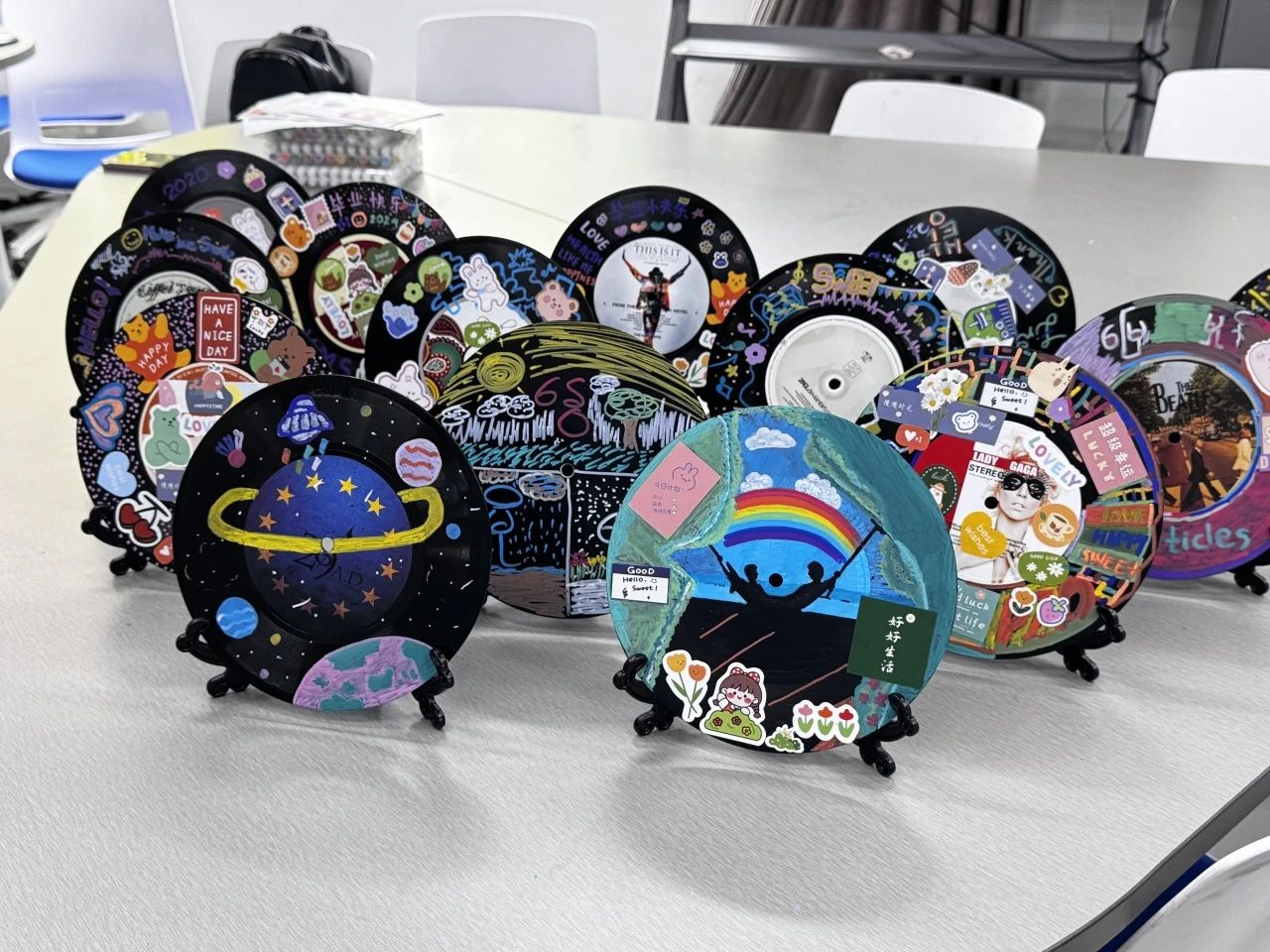 为了陶冶同学们的艺术情操,缓解压力和焦虑,进一步丰富同学们的课余生活,国际教育学院于5.25心理健康月开展“流光溢彩,绘就美好”——黑胶唱片diy活动。