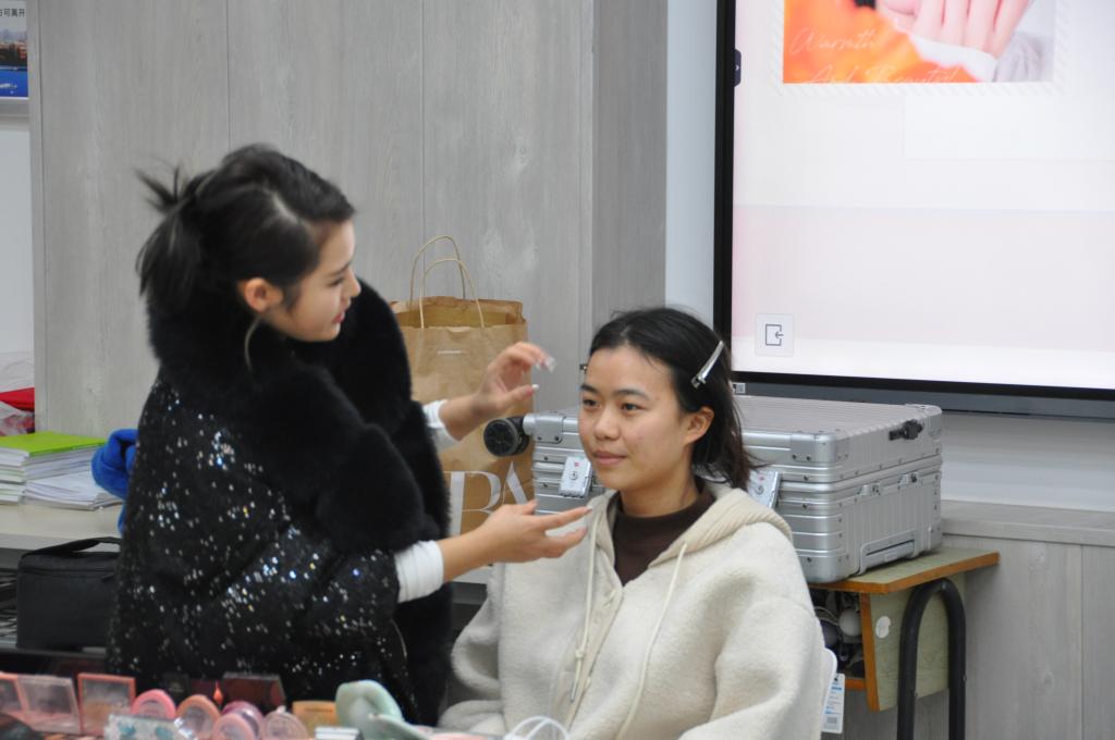 为提升同学们的形象气质和审美品位,增强职场面试时的自信心,12月25日下午,国际教育学院在3-309举办毕业生面试化妆技巧培训,培训邀请到YY MAKE UP创始人安琪化妆师,她的作品涉及综艺、影视、平面、广告、舞台等,是国内妆造行业实战经验丰富的化妆师。