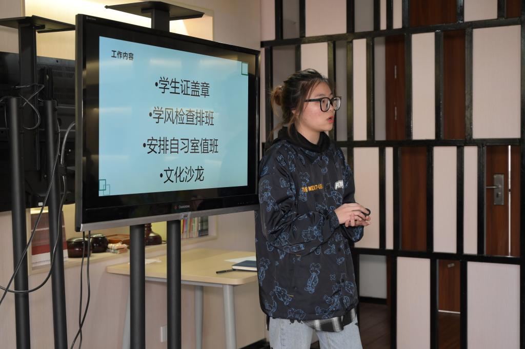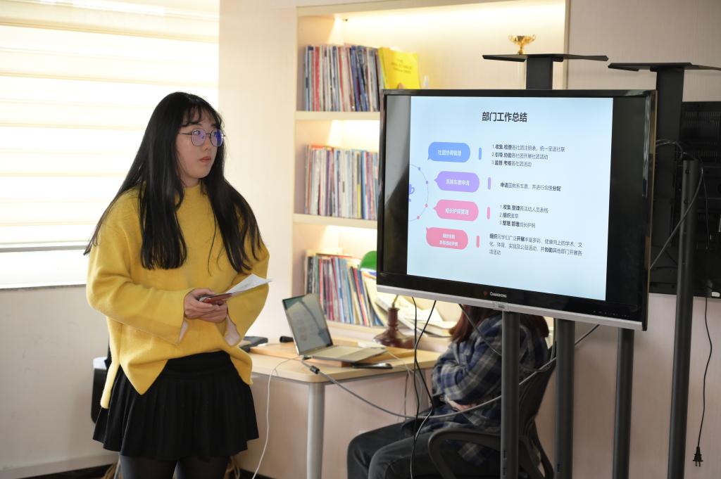 会议上各部门结合PPT总结了上学期的工作情况,提出了在上学期工作中存在的主要问题和解决方案,并分别对本学期的工作计划做了阐述。本学期各部门将会举办十余项活动,其中包括文化沙龙、国际相对论、学长说三大系列,寝室美化大赛,清廉教育、素质拓展等等。