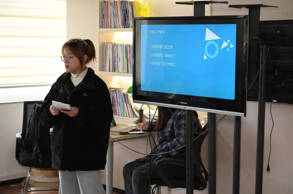随后,黄熠老师肯定了各部门的工作总结和规划,并给出了三点建议。第一,在开展活动时要做好活动策划,安排好具体工作流程和细节;第二,将活动以数据形式做好记录和分析,以便及时从中发现问题和解决;第三,增加团学组织的凝聚力,发挥好团学组织干部的带头引领作用。