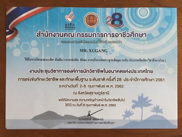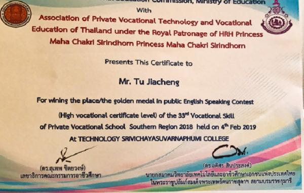 此次泰国全国职业院校技能大赛在泰国素叻他尼府举办,设置了众多赛项,我院8名参赛同学分别参加了网络技术比赛、网页管理比赛、英语演讲比赛和英语歌唱比赛等4个赛项。比赛期间泰国教育部职业教育委员会秘书长Suthep Chitayawong,副秘书长Prachakhom Chantharachit出席开幕式。泰国东部职教集团总裁Somchai Tumrongsuk,Pattlung Technical College校长Prasong U-Thong,Pang-nga Technical College校长Suthep Yongyoot以及Nakhonsithammarat Vocational College副校长Surin Tamlim等分别接待、会见了我院的参赛师生。