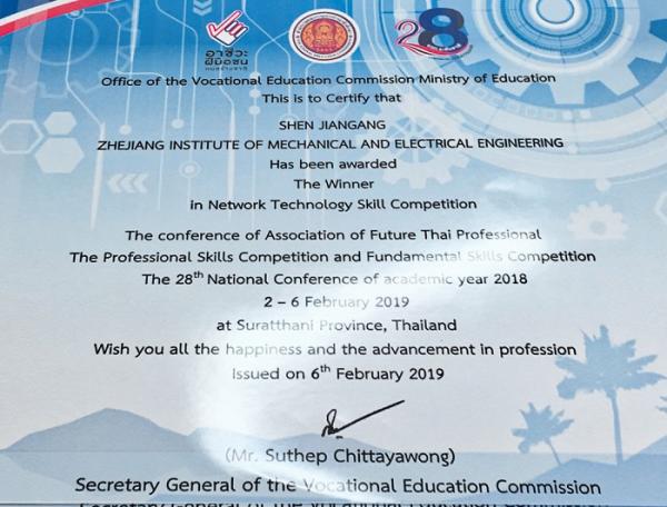 应泰国东部教育职教集团邀请,我院组队选派8位同学参加了2019年2月2日到2月5日举行的“泰国职业院校技能大赛”,与马来西亚、菲律宾、印度尼西亚、老挝以及东道主泰国等各国队伍同台竞技。我院学子努力拼搏,于农历大年初一传回捷报,喜获两金一银,以优异成绩为学院己亥新年献上贺礼。在本次比赛中,我院实现了国际技能大赛奖牌零的突破,也为我院开拓视野、锻炼队伍搭建其更广阔的平台,意义重大。