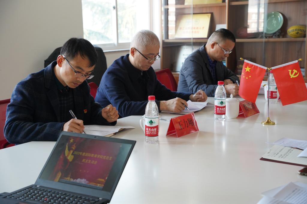 2月20日上午,国际教育学院党总支在3号楼会议室召开2022年度民主生活会,学校校长贺星岳、党委委员项建斌、纪委办公室王力翔到会指导,学院党总支委员参加会议,会议由党总支书记高水琴主持。