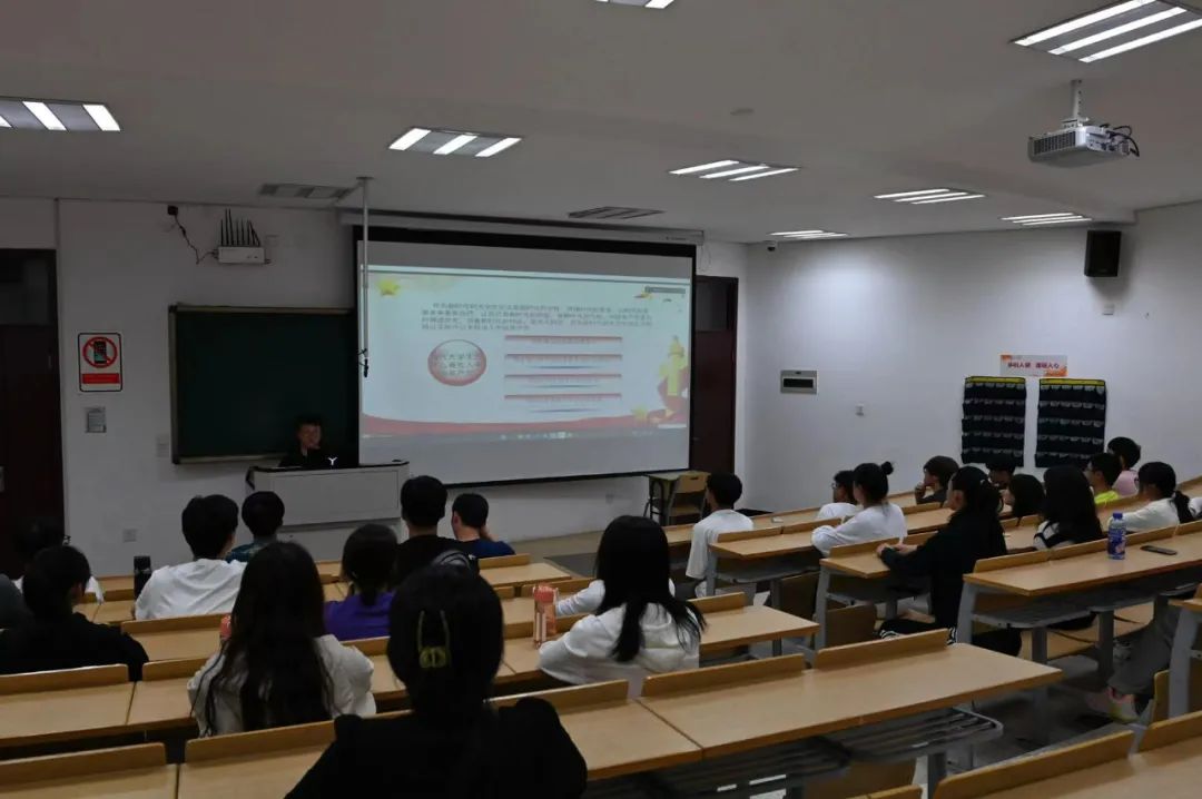 2022年9月20日晚,以“心怀理想,志存高远,以实际行动积极向党组织靠拢”为主题的讲座于海宁校区的小剧场如期开展,本次活动的主讲人是国际教育学院党总支组织员江炳林老师。由于疫情防控要求,此次入党启蒙教育活动采取线上线下相结合的方式展开,国际教育学院全体22级新生参与本次活动。