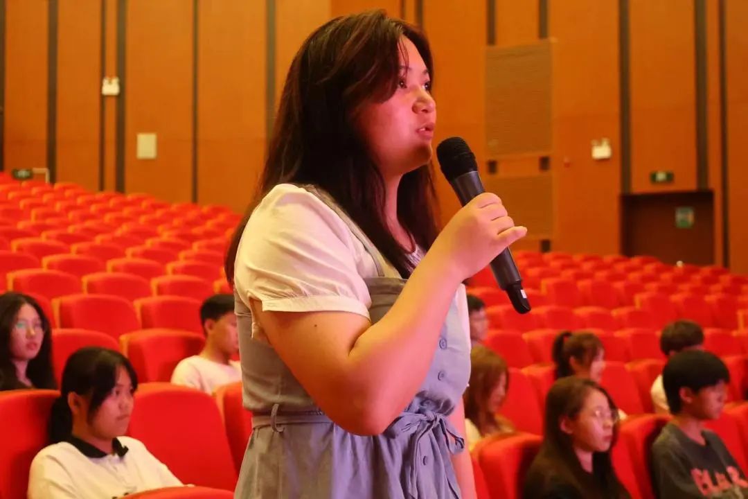 江老师以“当代大学生为什么要积极加入中国共产党”拉开了此次讲座的帷幕,并现场邀请两位同学进行回答。