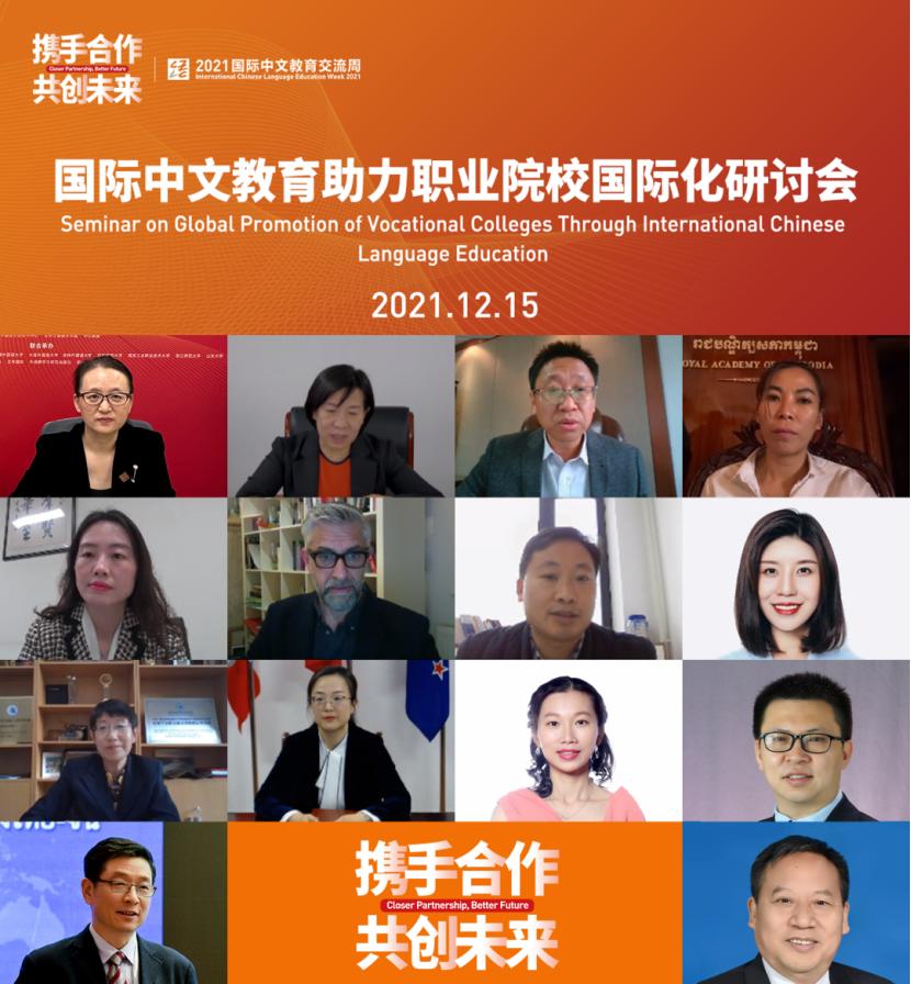 12月15日,国际中文教育助力职业院校国际化研讨会在中文联盟直播平台顺利召开。研讨会作为2021国际中文教育交流周的系列活动之一,吸引了近30家国内外国际中文教育、职业教育相关领域机构的专家相聚“云端”,围绕“中文+职业技能”教育平台及资源共建共享,职业院校、中文教育机构、企业共同体如何协同助力“中文+职业技能”教育海外推广等议题建言献策。