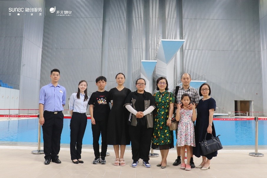 随后,国际教育学院一行在企业代表陪同下参观融创服务的杭州国际博览中心、杭州亚运会体育馆、游泳馆等。