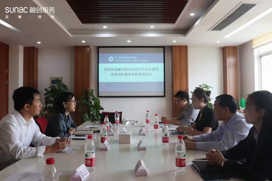 融创服务杭州大区人力行政经理孙锦娜从区域概况、业务发展、员工发展、企业文化等方面介绍了融创中国及融创服务,并指出在校企双方签订合作协议的基础上,就订单班、学徒制、产学研基地、学生就业、学生实习等方面开展更进一步深入合作交流。