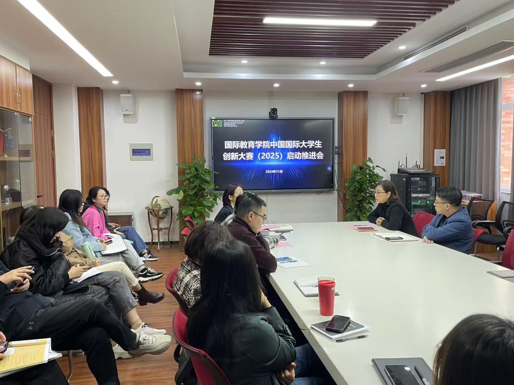 2024年11月20日下午,国际教育学院召开中国国际大学生创新大赛(2025)启动推进会。院长陶宇、党总支书记高水琴、副院长张伟中出席,全体教师参加。会议由高水琴主持。