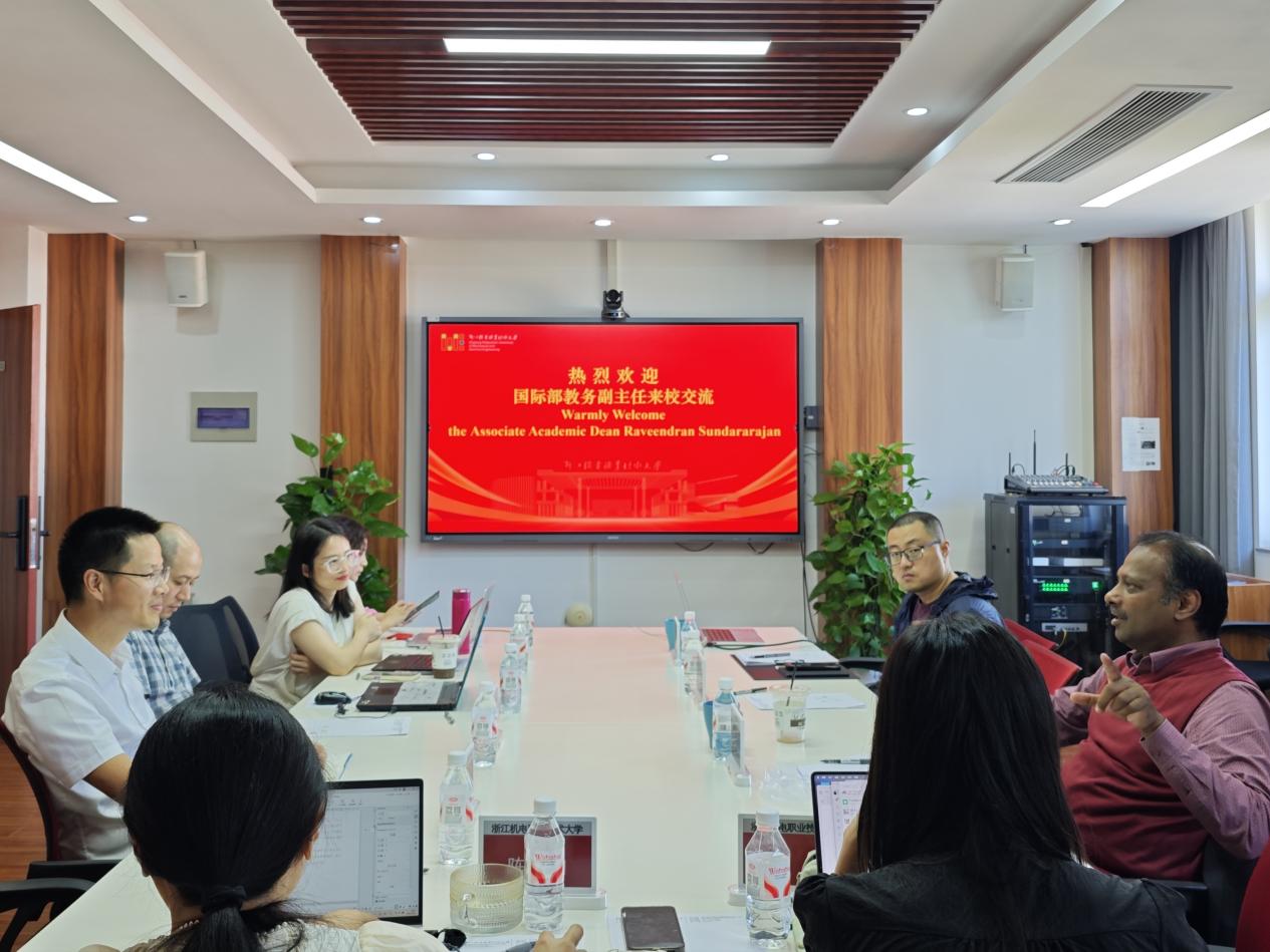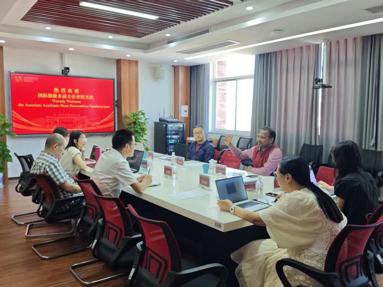 期间,王耀军向Raveendran Sundararajan副主任详细介绍了学校本科层次中外合作办学项目的申报方案,涵盖人才培养模式、课程体系建设及学习效果评估等核心内容。