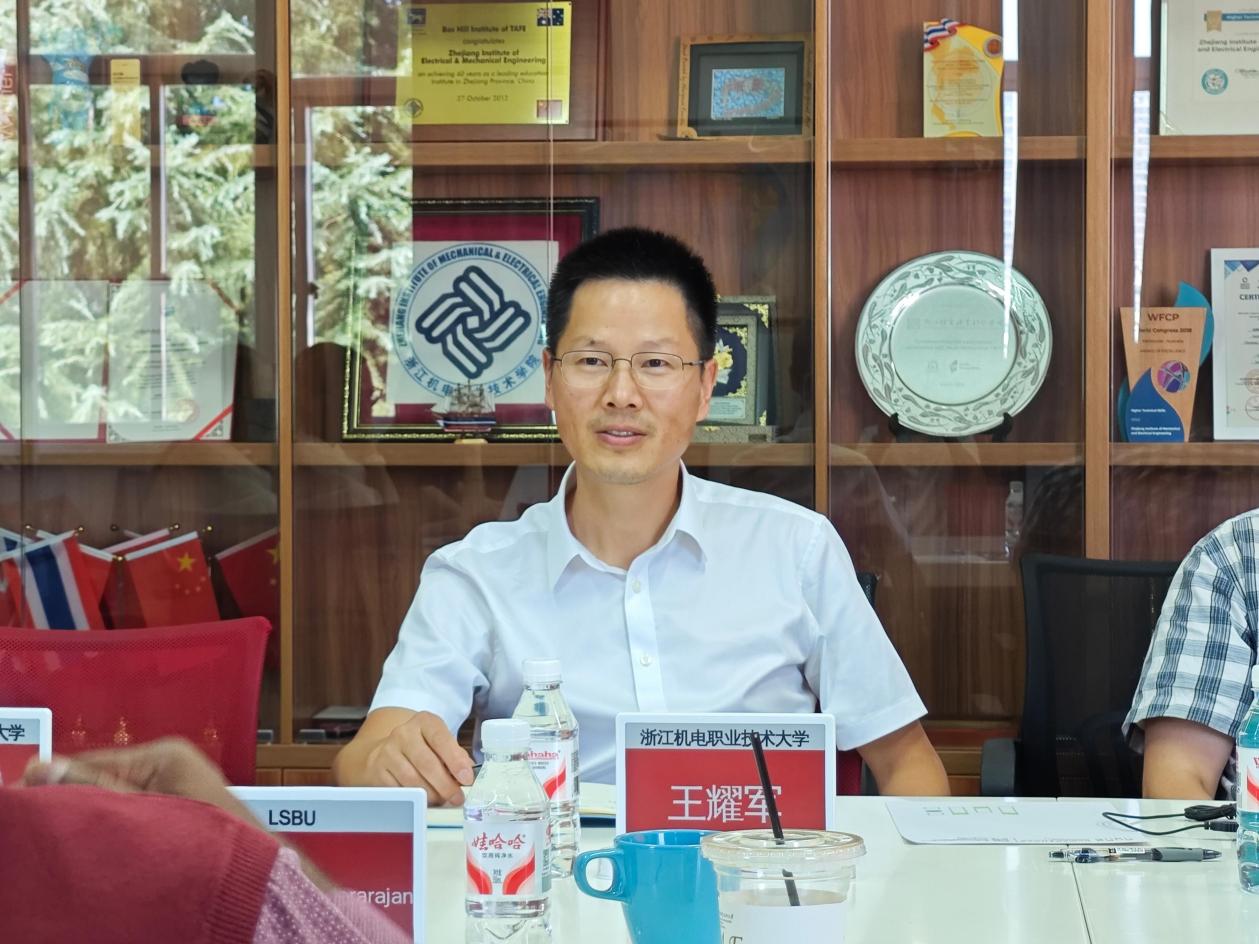 座谈会上,王耀军代表学校对Raveendran Sundararajan副主任的远道而来表示热烈欢迎,简要回顾了两校在职业教育领域已形成的丰富合作基础。他强调,随着学校2024年正式升格为本科院校,此次LSBU来访成为两校开启本科教育领域中英合作新篇章的重要契机——学校将与LSBU进一步深化协作,联合推进 “智能制造工程技术”、“工业设计”两个本科层次中外合作办学项目的申报工作。同时,王耀军表达了学校愿继续延续与LSBU在中英职业教育领域的合作、共同推动职业教育高质量发展、培养更多具备国际视野的高素质技术技能人才的愿景。