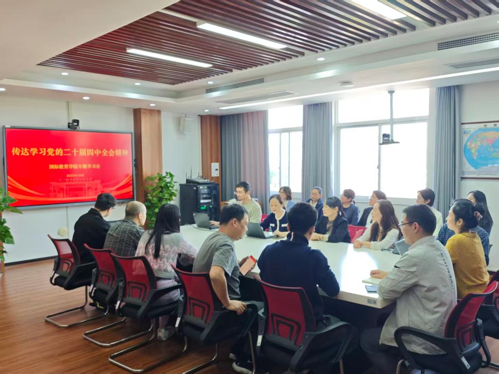 10月29日,taptap点点官方网站国际教育学院在3-408会议室召开教职工大会,专题传达学习党的二十届四中全会精神。学院党委书记高水琴出席并作领学,全体教师参加。