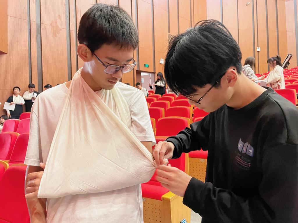 通过线上理论学习和现场学习,参训学员参加红十字救护员的理论考试和操作考核,完成模拟真实场景下心肺复苏、AED的使用、伤口包扎、骨折的固定等多项实操考核。全体参训学员通过考试,考取双证。