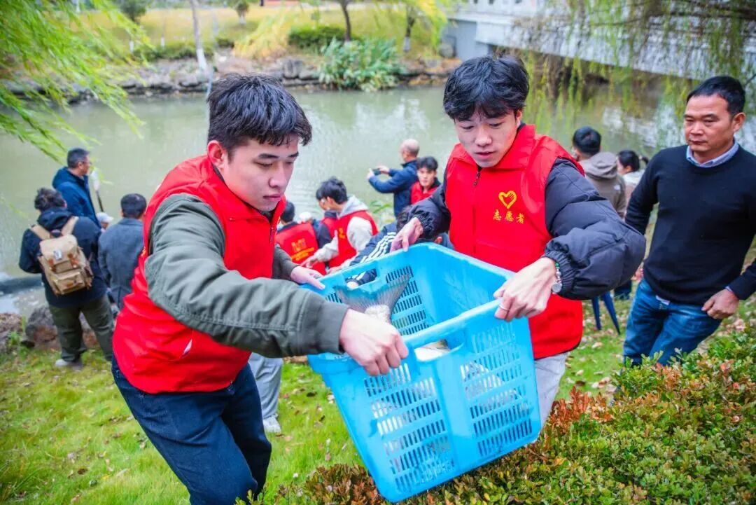 当天上午9时,校园里桑梓河畔已聚集了众多师生。“快看,网动了!”“那边有鱼跳起来了!”伴随着阵阵期待的欢呼,捕鱼活动正式开始。